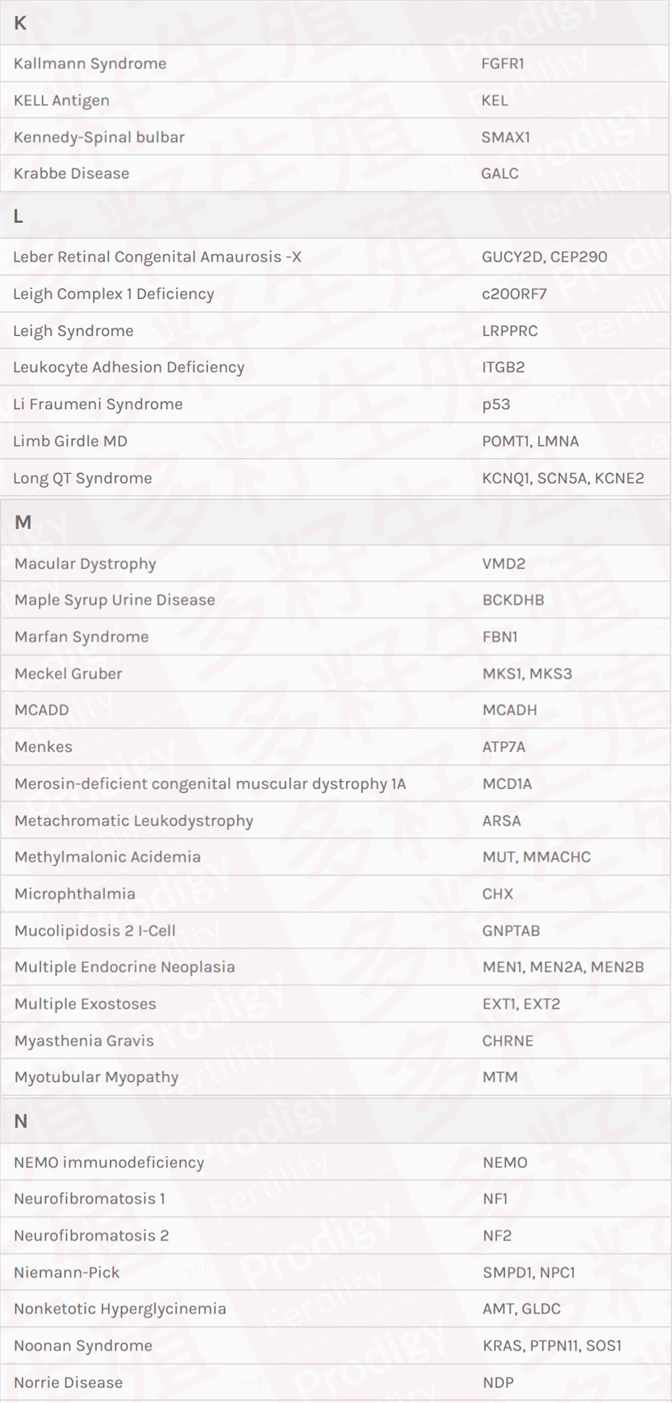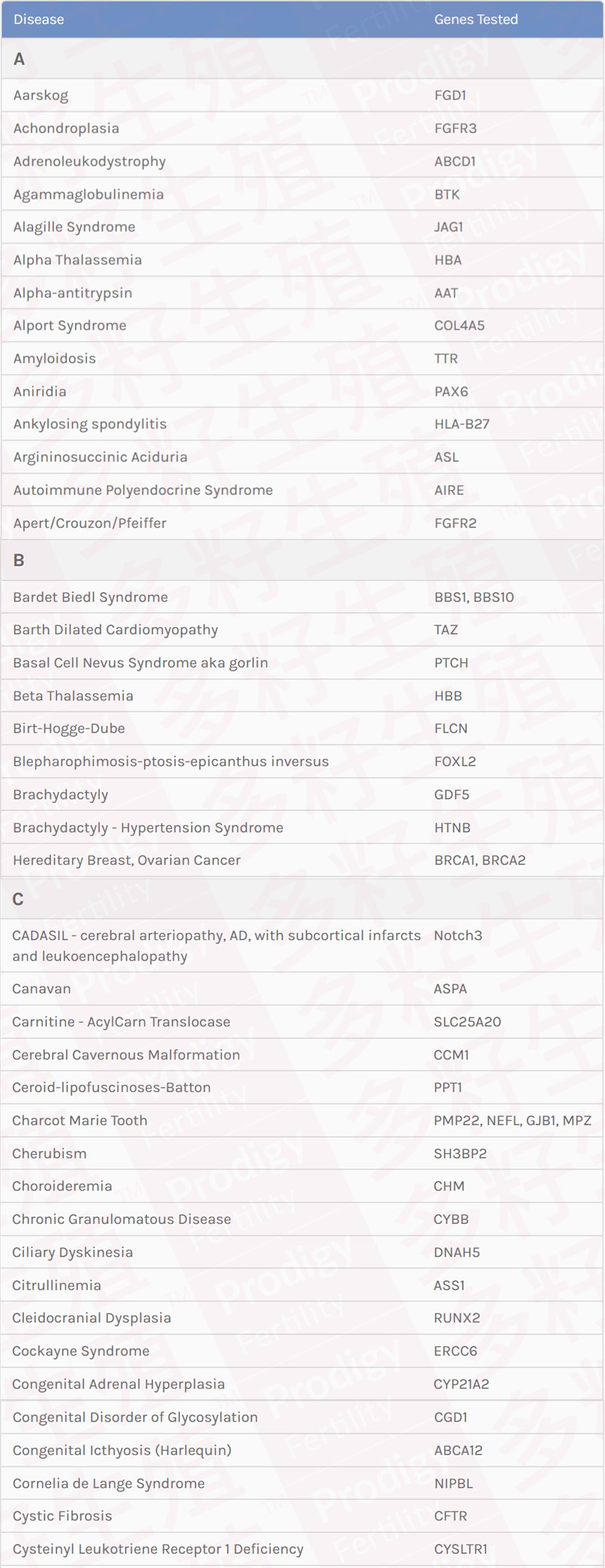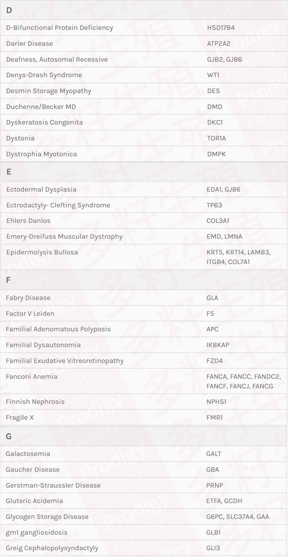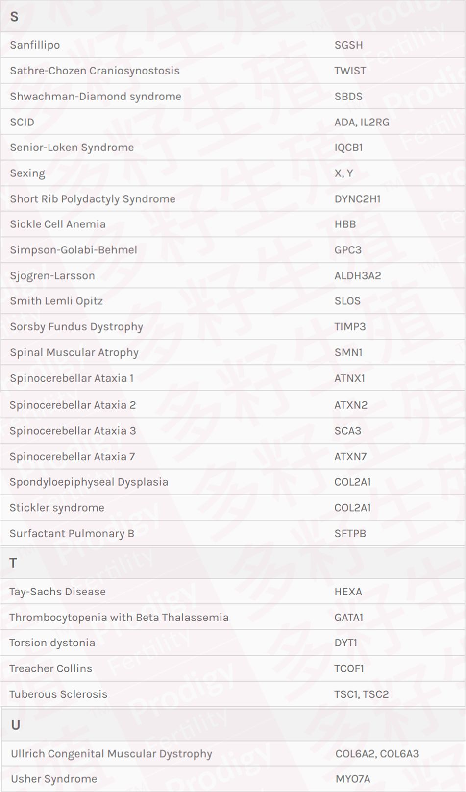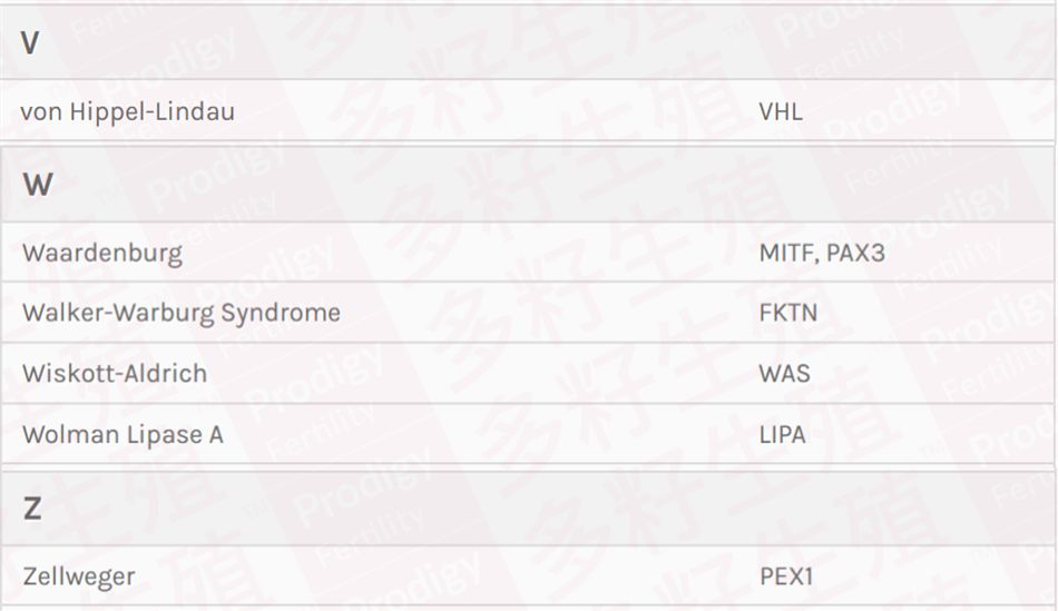 现在大家了解了为什么有家族遗传病的要选择美国试管婴儿,但是都有哪些遗传病可以预防呢?不要急,多多已经准备好了表格,大家可以对照一下。