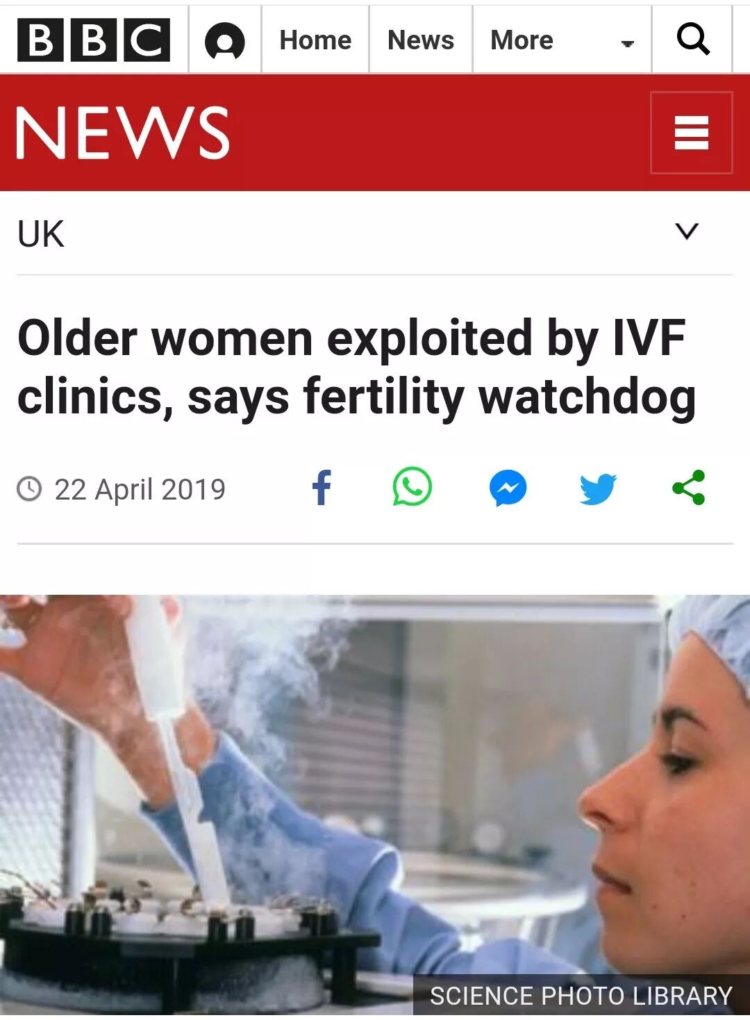 BBC报导:此前,英国很多生殖中心都会选择性宣传——“报喜不报忧”,让客户误以为“做试管能够提高大龄怀孕几率”,对于大龄怀孕几率产生错误的认知。