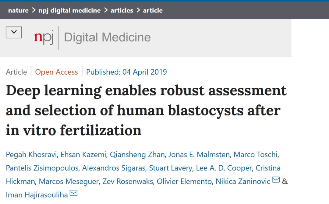 但是,4月4日一篇发布在nature上的论文提供了另一种胚胎评估的方式:AI分辨胚胎质量,比胚胎师挑选更为准确。