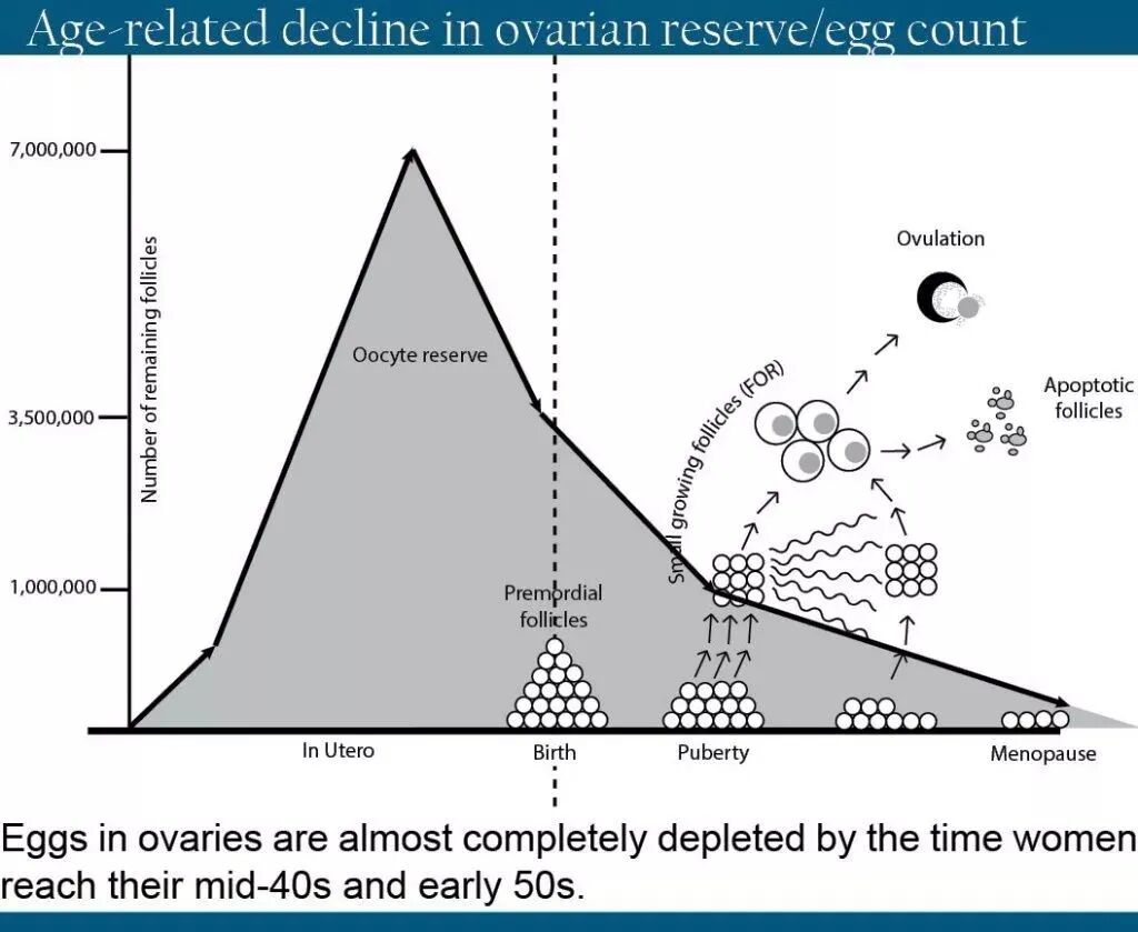 所以,随着女性年龄的增长,可以用来生育的卵泡数量越来越少。无论自然生育还是试管婴儿,都面临着巧妇难为无米之炊的问题,卵泡减少怀孕的机会自然降低。