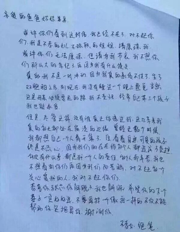 #妈妈带着三个孩子跳河身亡#中妈妈的遗书,正好印证了当下对产后抑郁症的忽视和无知!